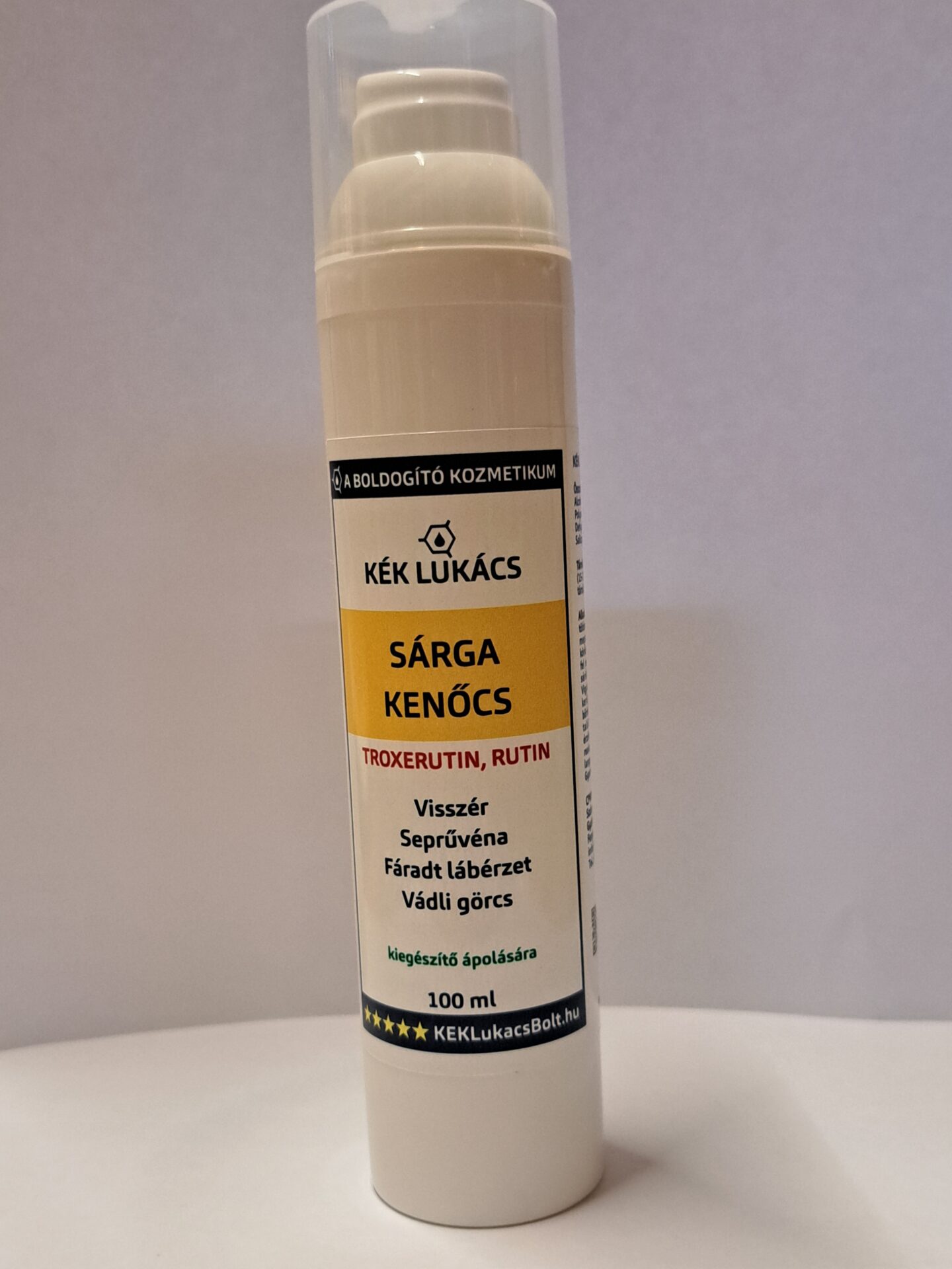 Visszér, és a kevésbé esztétikus látványt nyújtó hajszálerek, illetve a lábon lévő seprűvénák, visszértágulatokat is csökkentheti. A természetes összetételű selymes Kék Lukács Sárga Kenőcs hozzájárulhat a normál vérkeringés fenntartásához, az érfalak erősítéséhez, az ólomláb érzés és a lábak fáradtságérzetének csökkentéséhez. A szem alatti tartósan sötét területek halványítására is megoldás lehet.